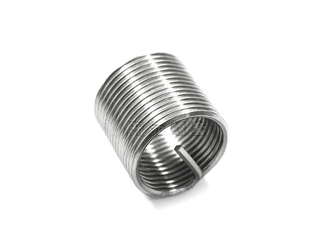 描 述:鋼絲螺套是一種新型的螺紋緊固件,分為普通型和鎖緊型兩種。是由高精度菱形截面的不銹鋼絲精確加工而成的一種彈簧狀內(nèi)外紋同心體??s緊型是在普通型的基礎上增加一圈或幾圈縮緊圈。鋼絲螺套嵌入鋁、鎂合金、鑄鐵、玻璃鋼、塑料等低強度的工程材料的螺紋中,能形成標準的M、MJ螺紋,具有連續(xù)強度、抗沖擊和耐磨損的功能,并能分散應力保護基體螺紋,大大延長基體的使用壽命。另外,鋼絲螺套還可以在原基礎上的螺紋脫扣或亂牙時,作為修復手段,而不致造成整體報廢,并且維修方便,快速經(jīng)濟。